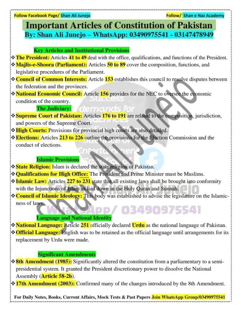 For the Assistant Election Commissioner (AEC) exam, mastering the Constitution of Pakistan (1973) and its amendments is essential. Below is a structured table summarizing the key amendments, their year, and major changes.