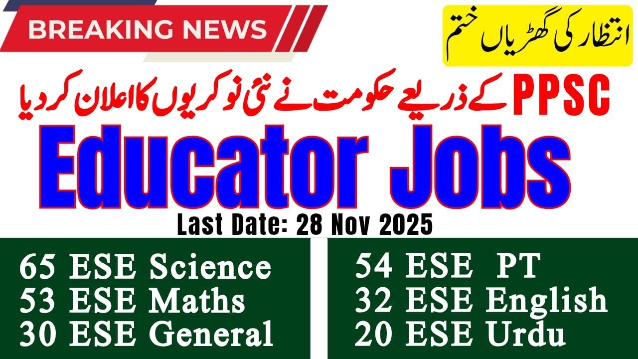 PPSC Educators Jobs 2025 – ESE General BS‑14 Seats Announced, Apply by 28 November Read More