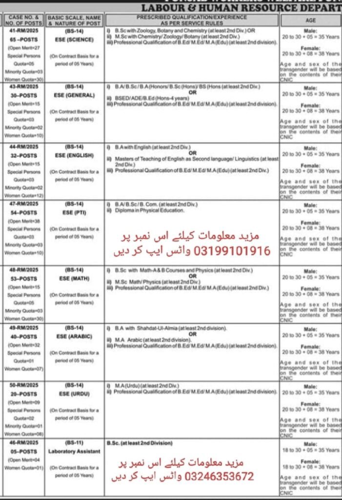 PPSC Ad #43 Teaching/Educator Jobs 2025 – 299 seats announced in Labor & Human Resource Department. Age limit: Male 35, Female 38. Qualification: Graduation (BA/BSc/BS/BS Hons.). Last date to apply: 28 November 2025.